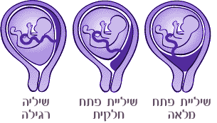 - שליית פתח חלקית – המכסה חלקית את צוואר הרחם.